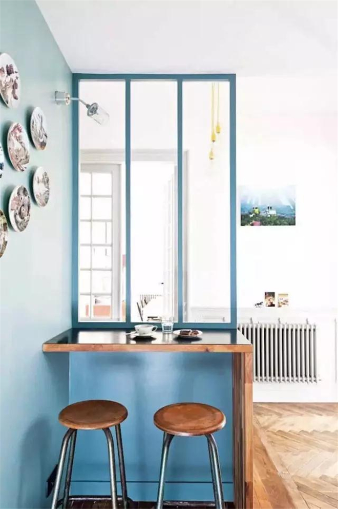 隔斷與墻壁之間的角落,不利用起來實在太心疼!簡單加兩塊打磨過的天然紋理木板,家里又多了一個吧臺或者小餐桌,足以度過兩個人愜意的下午茶時間。