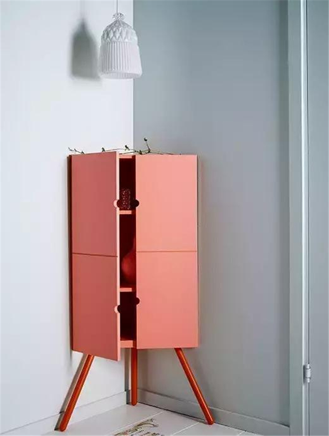 轉角利用需求越來越大,很多家具品牌會出這種三角柜,買回來直接一放,簡約利落中,散發暖暖的生活情調。